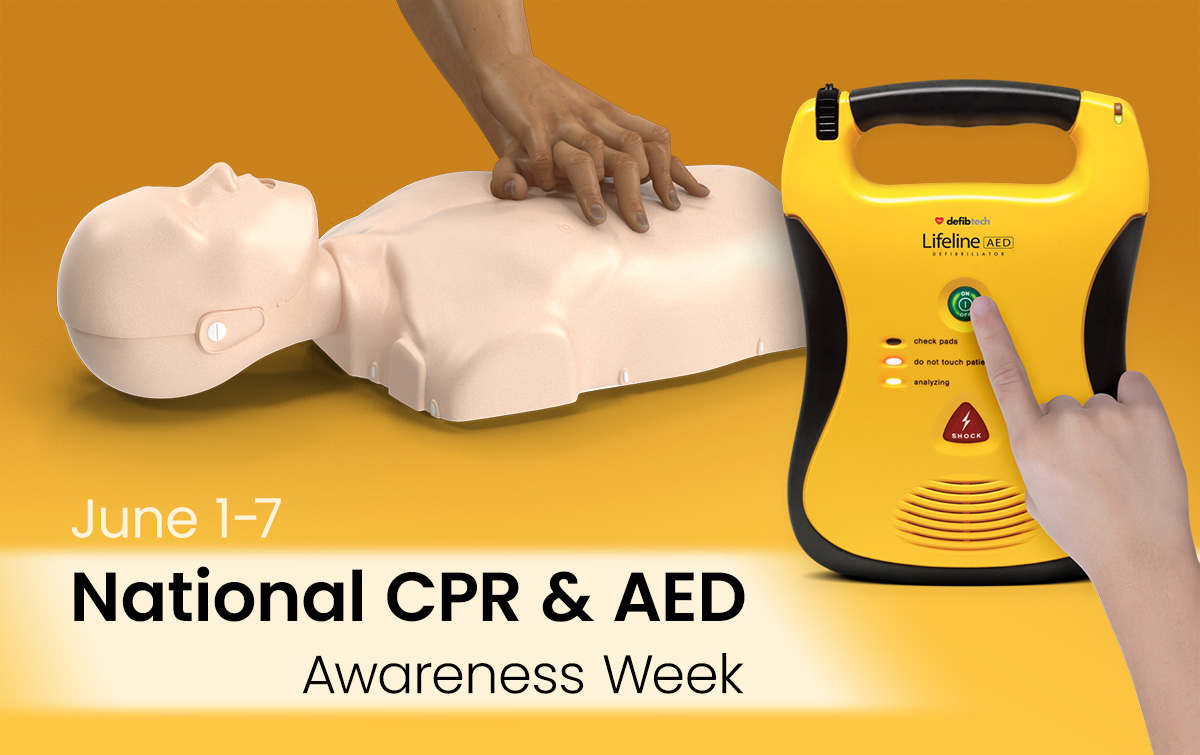 June 1-7 is CPR & AED Awareness Week. This is a great time to raise awareness and showcase the importance of both CPR and AEDs. When CPR is provided, and an AED is used quickly in a sudden cardiac arrest emergency, survival rates can be much higher. The more people that are comfortable performing CPR and using an AED, the more lives that can be saved!
